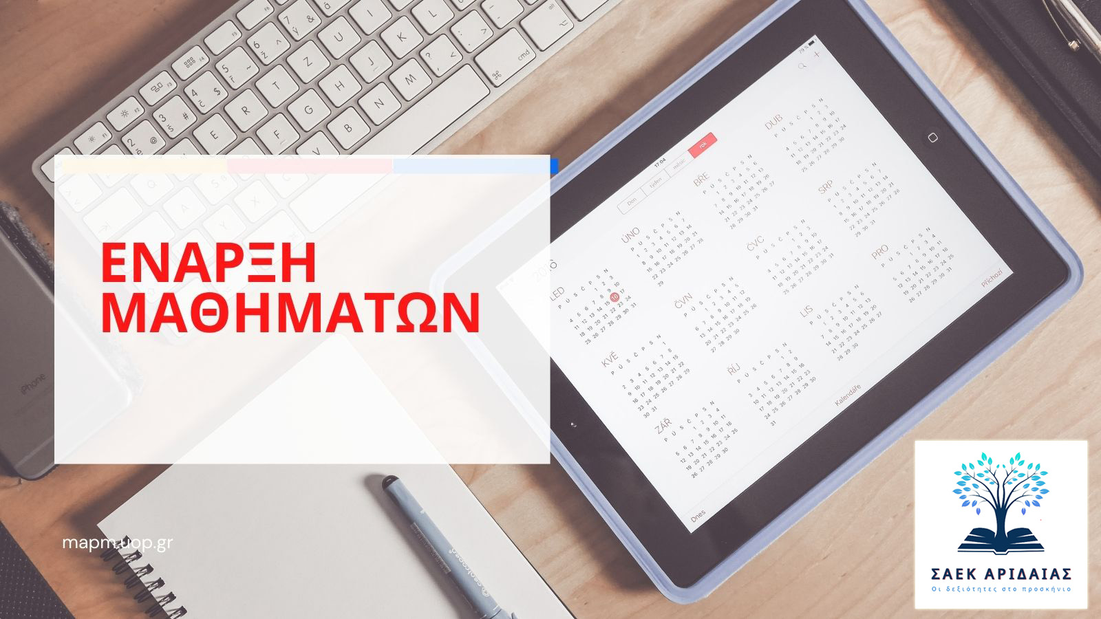 Έναρξη Μαθημάτων Χειμερινού Εξαμήνου στη ΣΑΕΚ ΑΡΙΔΑΙΑΣ – Τετάρτη 1 Οκτωβρίου